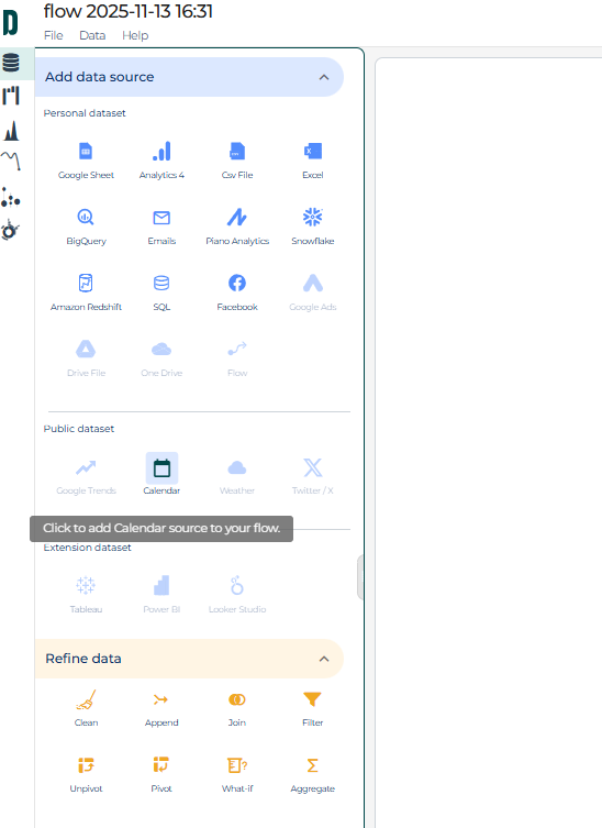 Or, simply connect your calendar table in Datama Prep when you create a new use case. Learn more.