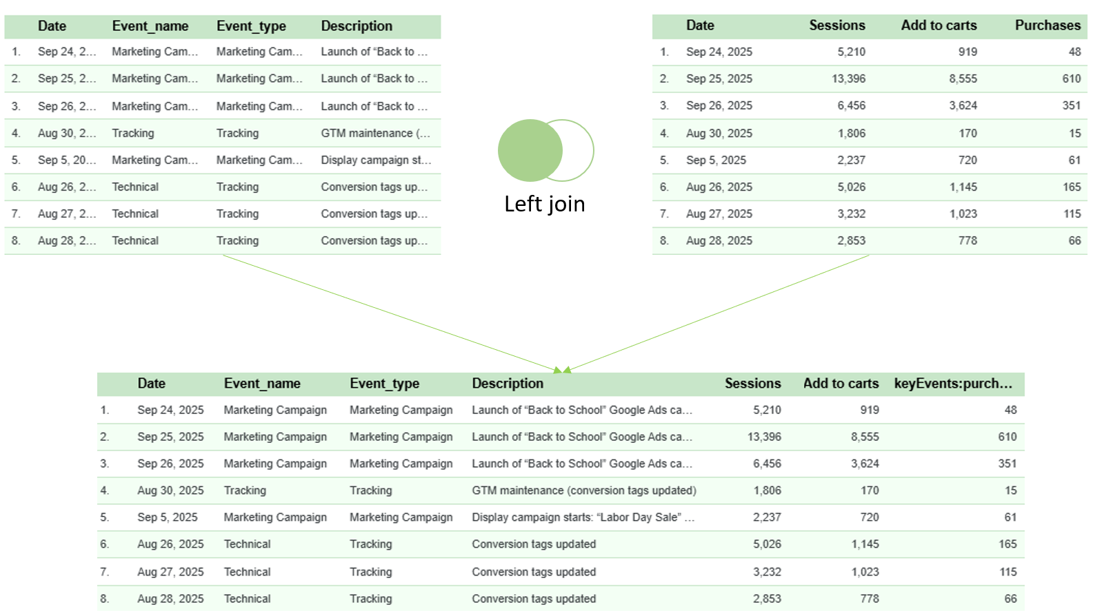 This way, every KPI record is linked to the corresponding event (if any) on that date — allowing you to visualize and analyze KPI variations alongside business or operational events.