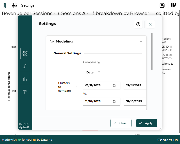Defining a comparison is optional in Datama Explore but enables powerful variation analysis. You can compare dates (start period vs end period) or segments of other dimensions.