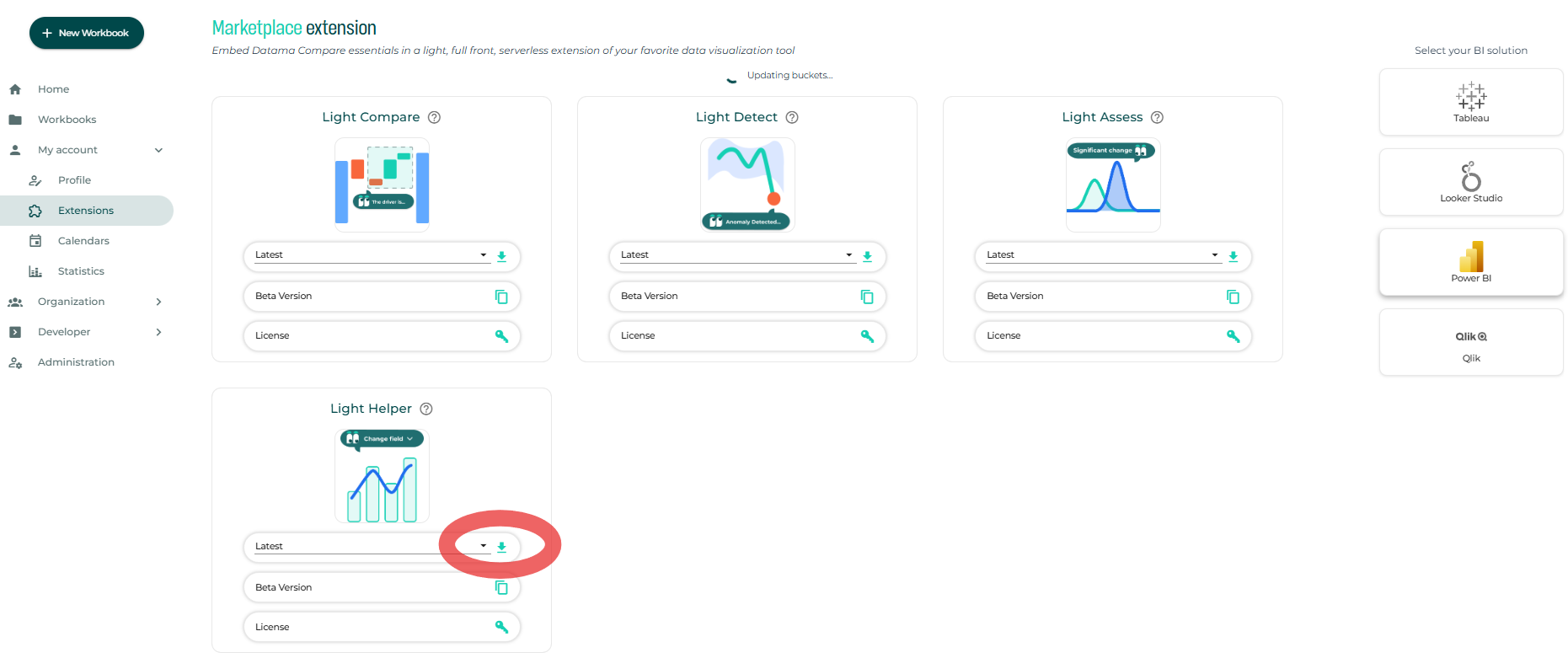 - Choose the Datama explore from the list provided on your account on app.datama.io and click on download it.