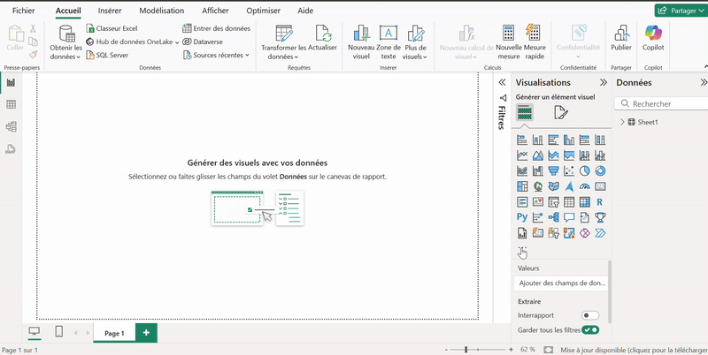 - The visual will now appear as a new icon in the visualization pane. Click on it to create the visual on the report canvas.