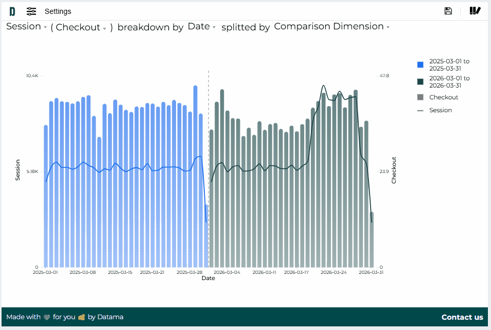 With Datama Calendar, you can easily add business events (internal and external) to your dashboards and instantly visualize their impact on your KPIs. 📊